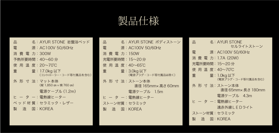 金・銀・チタン・ゲルマニウム・メノウなど10 種類以上の無機質成分、ミネラル成分を含んだホマノ石を練り込んだ、セラミック製のアーユルストーンシリーズ。