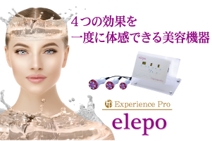 エレクトロポーション・高周波・EMS・LEDと4つの効果を一度に体感出来る美容機器エレポ。お肌に重要なトリートメントが同時にでき、浸透・引き上げ・引き締めなどを瞬時に実感していただけます。トータルエージングケアで肌本来の美しさを引き出し、美肌へ導きます。