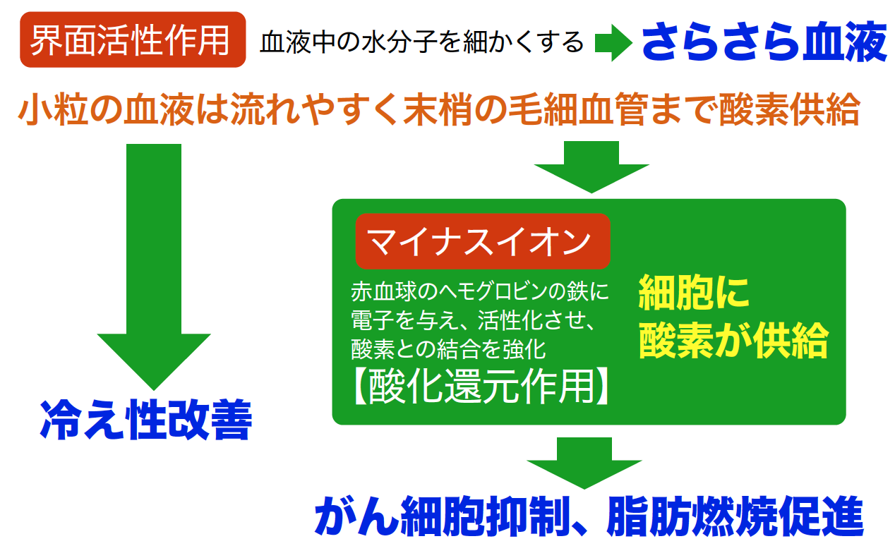 酸素供給作用、マイナスイオン効果、遠赤外線効果、免疫力向上 |