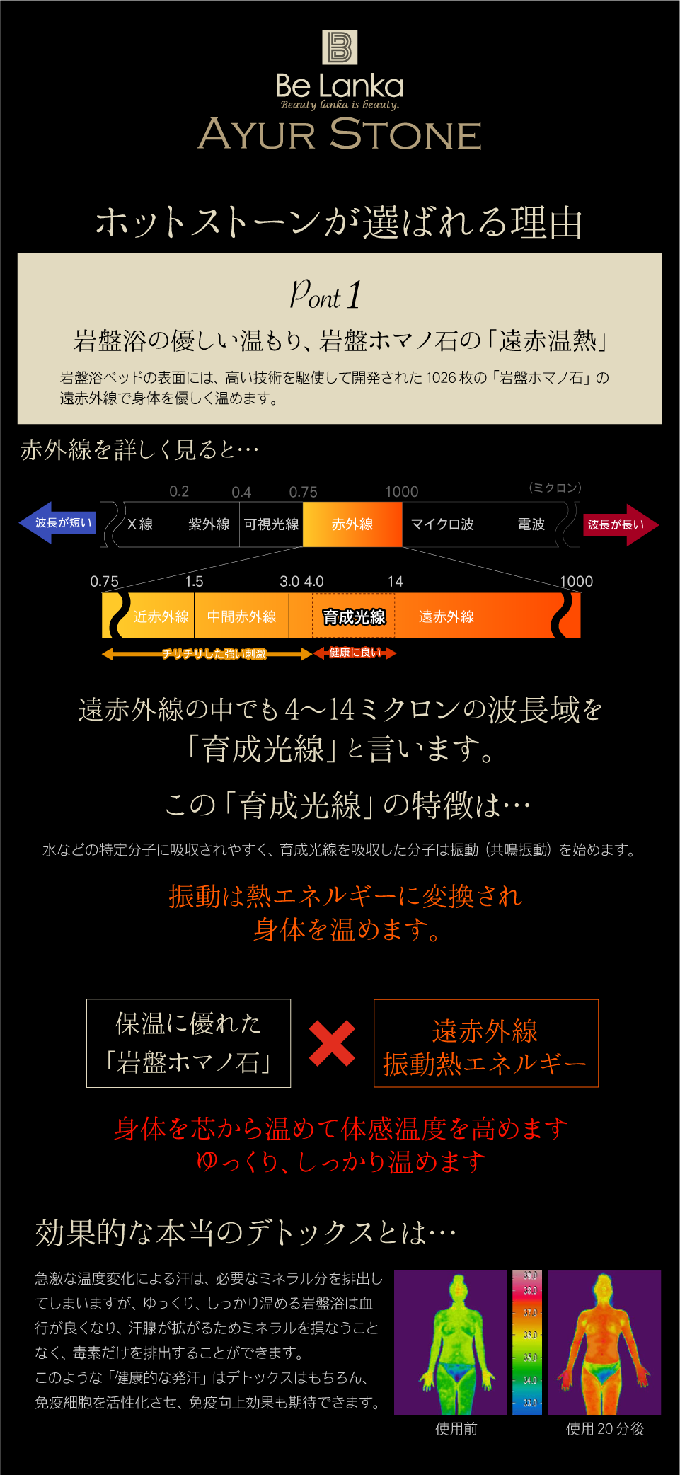 大量の輻射熱と遠赤外線、マイナスイオンなどの波動エネルギーを出します。