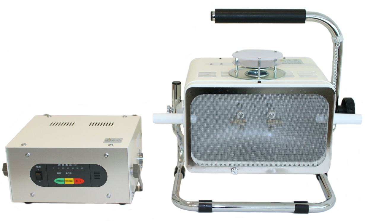 アーク光線治療器2台でサンドイッチ照射します。 光の十字照射で、体内深く作用し、短時間でも、治療効果を高めます。